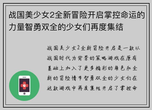 战国美少女2全新冒险开启掌控命运的力量智勇双全的少女们再度集结