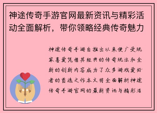 神途传奇手游官网最新资讯与精彩活动全面解析,带你领略经典传奇魅力